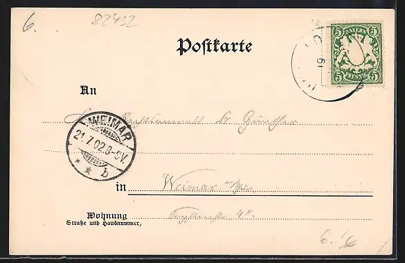 alte Ansichtskarte, gelaufen 1902, guter Zustand
