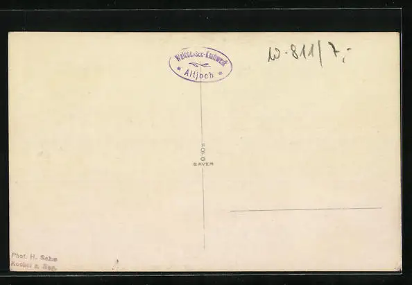 Personenbezogene Daten auf der Rückseite der Karte wurden durch blauen Textmarker unkenntlich gemacht. Die blauen Stellen sind auf die Vorderseite durchgeweicht und wirken sich negativ auf das Postkartenfoto aus
