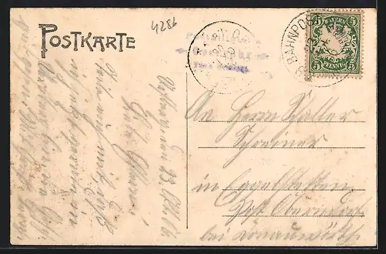 alte Ansichtskarte, gelaufen 1906, minimaler Einriss re. unten, guter Zustand