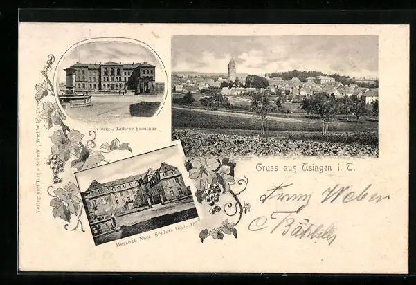 AK Usingen i. T., Königl. Lehrer-Seminar, Herzogl. Nass. Schloss