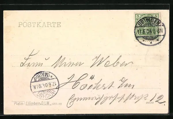 alte Ansichtskarte, gelaufen 1904, guter Zustand