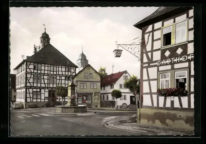 AK Usingen im Taunus, Strassenpartie am Rathaus mit Gasthof
