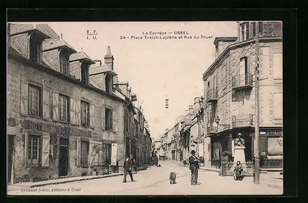 AK Ussel, Place Treich-Laplène et Rue du Thuel