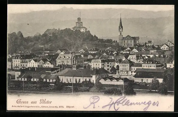 AK Uster, Teilansicht mit Bergkette aus der Vogelschau