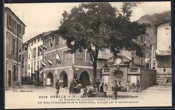 AK Utelle, Place de la République avec l`arbre et les bâtiments historiques