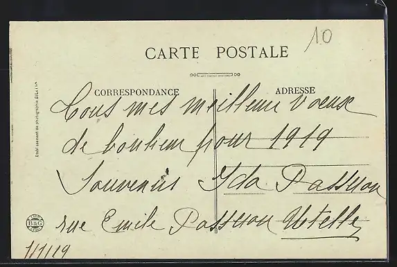 Personenbezogene Daten auf der Rückseite der Karte wurden durch blauen Textmarker unkenntlich gemacht. Die blauen Stellen sind auf die Vorderseite durchgeweicht und wirken sich negativ auf das Postkartenfoto aus