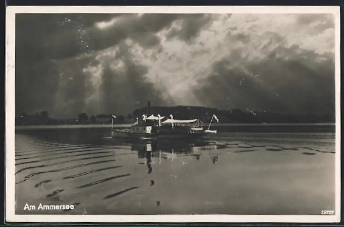 AK Utting / Ammersee, Dampfschiff auf dem See