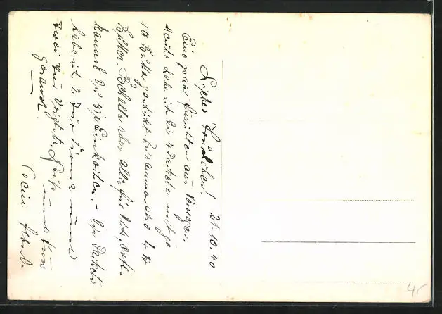 Personenbezogene Daten auf der Rückseite der Karte wurden durch blauen Textmarker unkenntlich gemacht. Die blauen Stellen sind auf die Vorderseite durchgeweicht und wirken sich negativ auf das Postkartenfoto aus