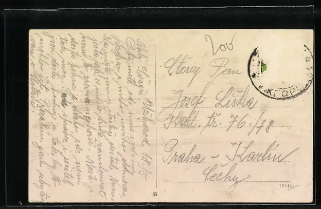 alte Ansichtskarte, gelaufen, Briefmarke entfernt, rückseitig Oberflächenschaden, guter Zustand