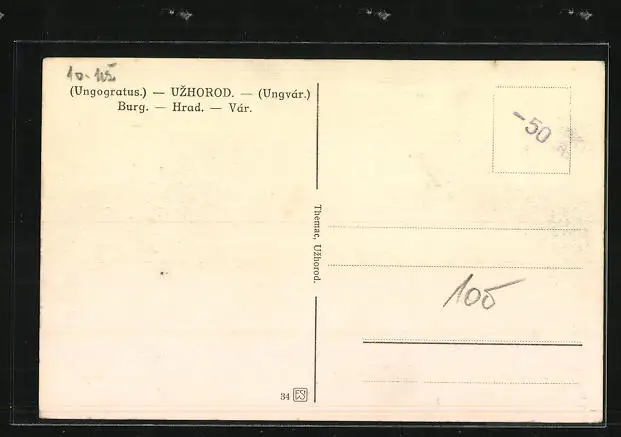 Personenbezogene Daten auf der Rückseite der Karte wurden durch blauen Textmarker unkenntlich gemacht. Die blauen Stellen sind auf die Vorderseite durchgeweicht und wirken sich negativ auf das Postkartenfoto aus