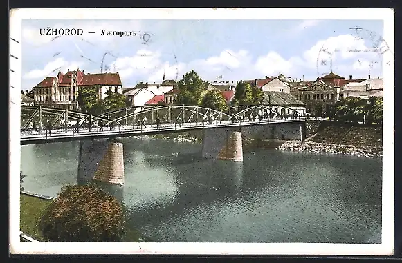 AK Uzhorod, Ortsansicht hinter Flussbrücke