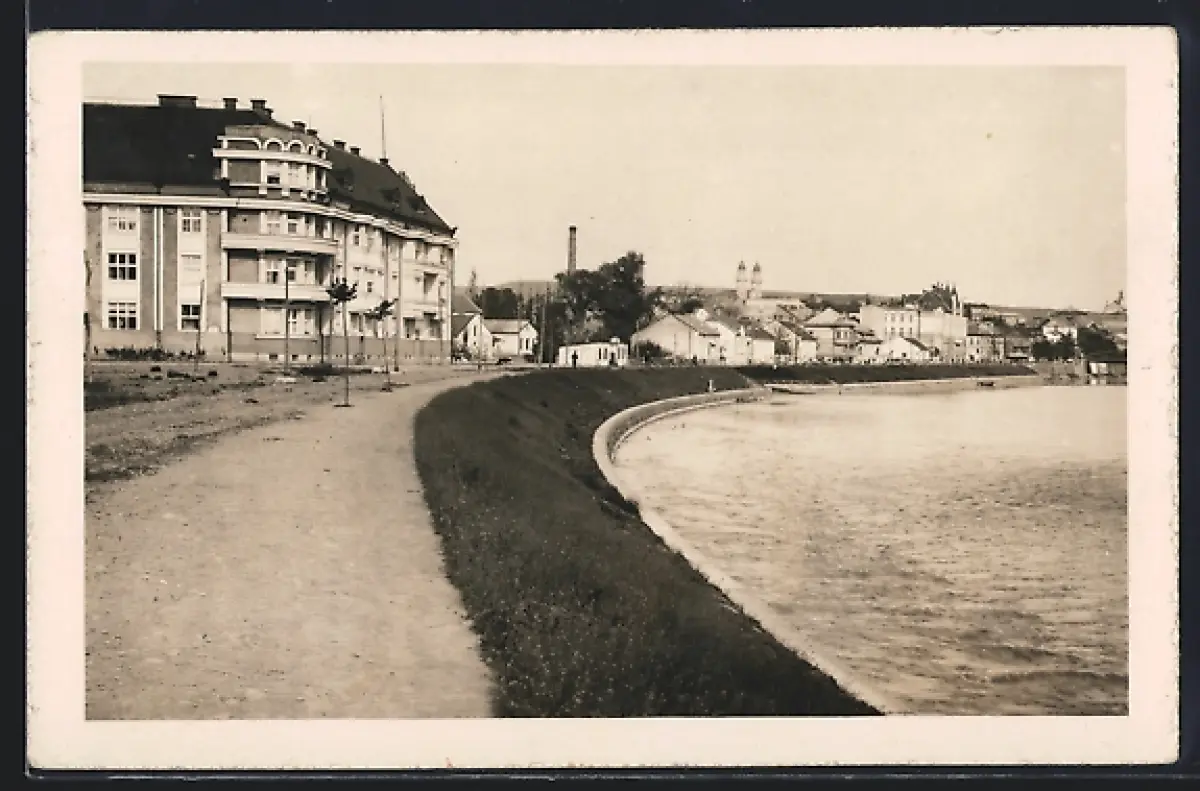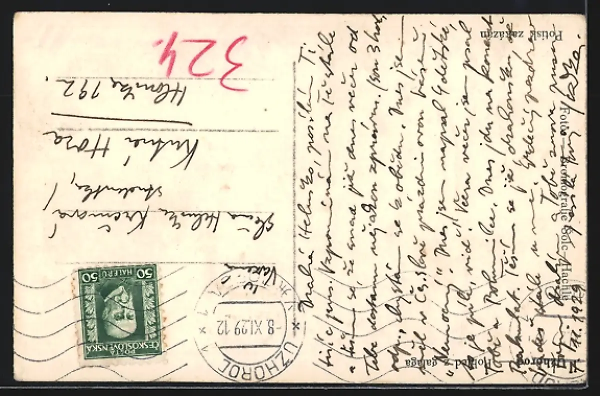 Personenbezogene Daten auf der Rückseite der Karte wurden durch blauen Textmarker unkenntlich gemacht. Die blauen Stellen sind auf die Vorderseite durchgeweicht und wirken sich negativ auf das Postkartenfoto aus