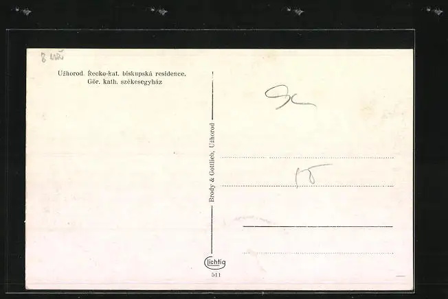 Personenbezogene Daten auf der Rückseite der Karte wurden durch blauen Textmarker unkenntlich gemacht. Die blauen Stellen sind auf die Vorderseite durchgeweicht und wirken sich negativ auf das Postkartenfoto aus
