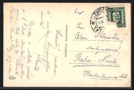 alte Ansichtskarte, gelaufen, Briefmarke entfernt, guter Zustand