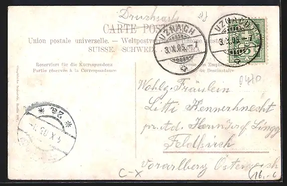 gelaufen 1905, Eckknick re. unten, guter Zustand