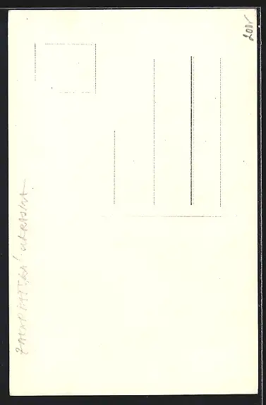 Personenbezogene Daten auf der Rückseite der Karte wurden durch blauen Textmarker unkenntlich gemacht. Die blauen Stellen sind auf die Vorderseite durchgeweicht und wirken sich negativ auf das Postkartenfoto aus