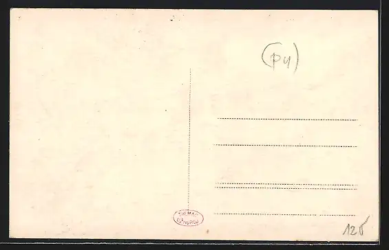 Personenbezogene Daten auf der Rückseite der Karte wurden durch blauen Textmarker unkenntlich gemacht. Die blauen Stellen sind auf die Vorderseite durchgeweicht und wirken sich negativ auf das Postkartenfoto aus