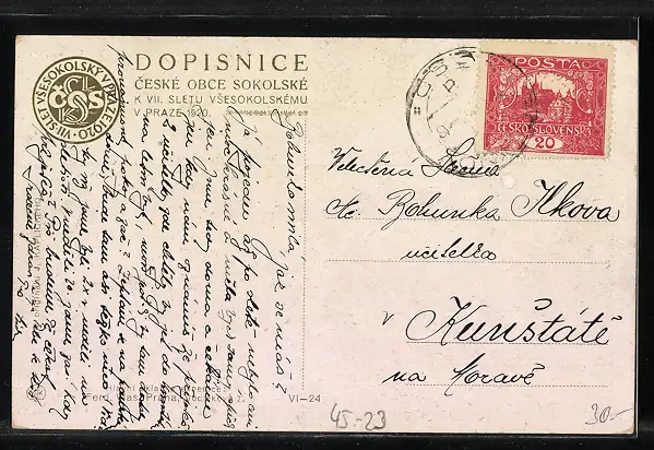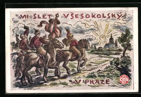 AK VII. Slet Vsesokolsky V Praze 1920, Reiter mit Fahne, Sokol