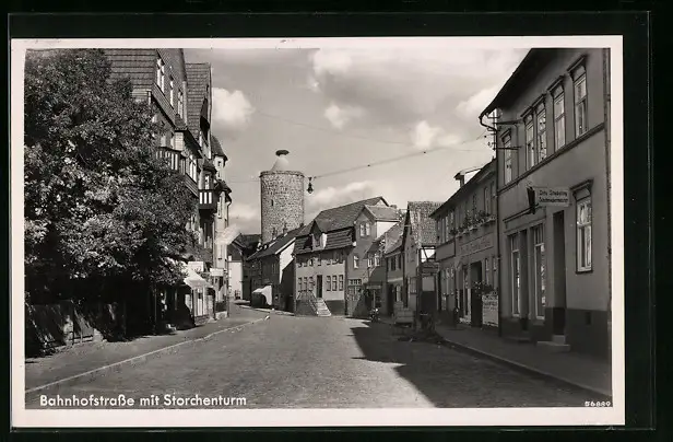 AK Vacha /Rhön, Bahnhofstrasse mit Storchenturm
