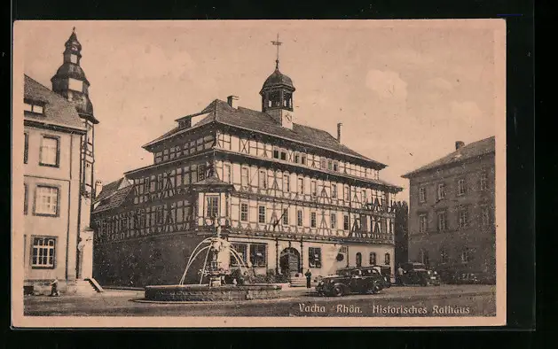 AK Vacha a. Rhön, Brunnen vor dem historischen Rathaus