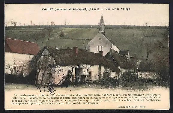 AK Vachy /Yonne, Vue sur le Village avec chaumières et chapelle élégante
