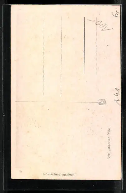 Personenbezogene Daten auf der Rückseite der Karte wurden durch blauen Textmarker unkenntlich gemacht. Die blauen Stellen sind auf die Vorderseite durchgeweicht und wirken sich negativ auf das Postkartenfoto aus