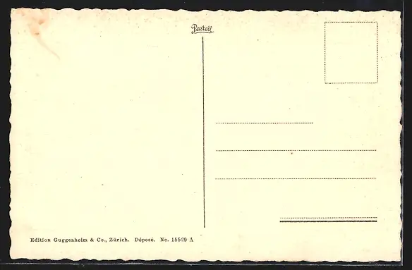 Personenbezogene Daten auf der Rückseite der Karte wurden durch blauen Textmarker unkenntlich gemacht. Die blauen Stellen sind auf die Vorderseite durchgeweicht und wirken sich negativ auf das Postkartenfoto aus