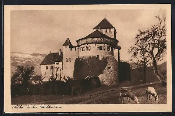 AK Vaduz, Schloss Vaduz mit weidenden Kälbern