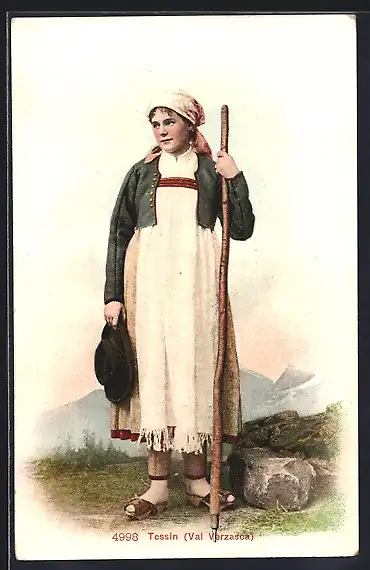 AK Val Verzasca, Junge Frau in Trachtenkleidung