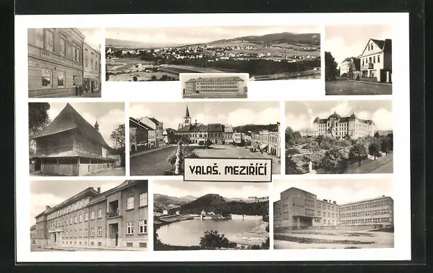 AK Valas. Mezirici, Gebäudeansicht, Geschäft, Platz