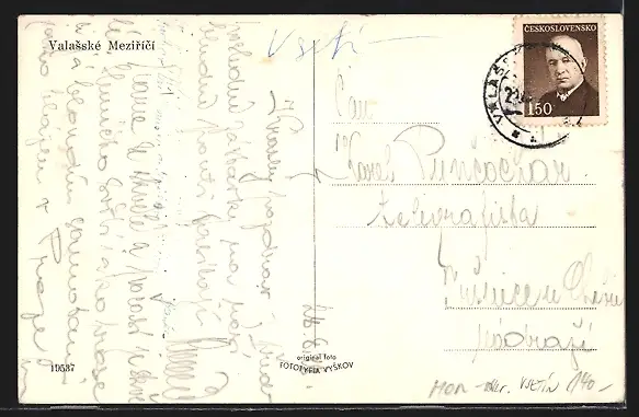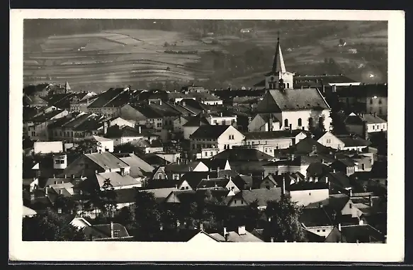 AK Valasské Mezirící, Teilansicht mit Kirche