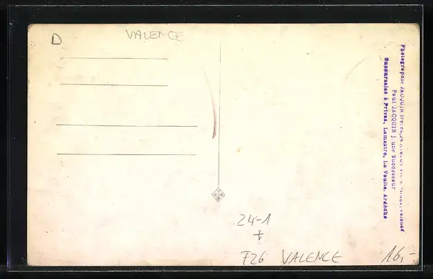 Personenbezogene Daten auf der Rückseite der Karte wurden durch blauen Textmarker unkenntlich gemacht. Die blauen Stellen sind auf die Vorderseite durchgeweicht und wirken sich negativ auf das Postkartenfoto aus