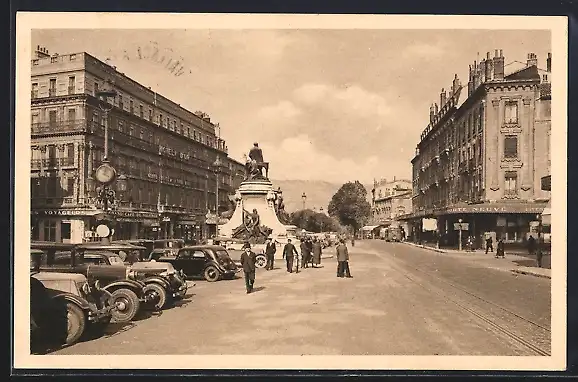 AK Valence, Place de la République avec statue et voitures anciennes