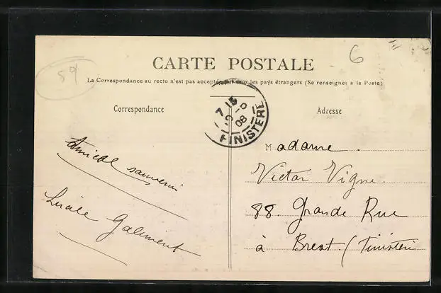 Personenbezogene Daten auf der Rückseite der Karte wurden durch blauen Textmarker unkenntlich gemacht. Die blauen Stellen sind auf die Vorderseite durchgeweicht und wirken sich negativ auf das Postkartenfoto aus