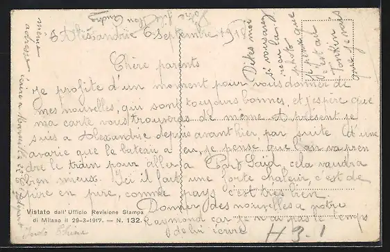 Personenbezogene Daten auf der Rückseite der Karte wurden durch blauen Textmarker unkenntlich gemacht. Die blauen Stellen sind auf die Vorderseite durchgeweicht und wirken sich negativ auf das Postkartenfoto aus