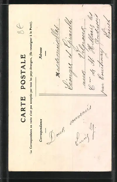 Personenbezogene Daten auf der Rückseite der Karte wurden durch blauen Textmarker unkenntlich gemacht. Die blauen Stellen sind auf die Vorderseite durchgeweicht und wirken sich negativ auf das Postkartenfoto aus