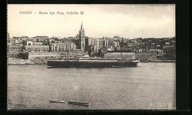 AK Valletta, Birds Eye View, Panorama mit Schiff