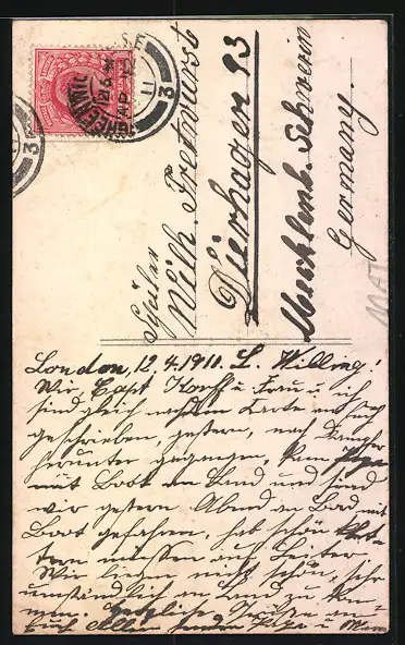 gelaufen 1911, Bugspur oben Mitte, guter Zustand