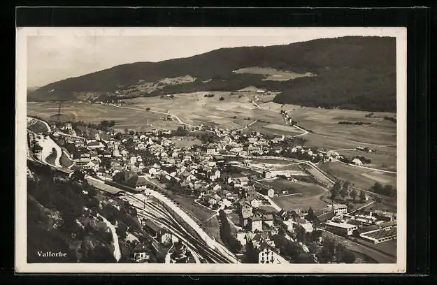 AK Vallorbe, Ortsansicht mit Blick ins Tal