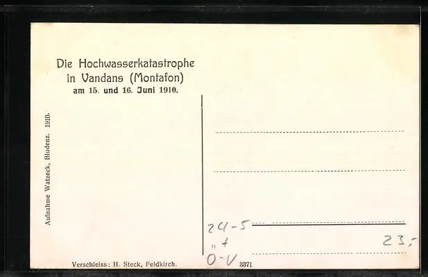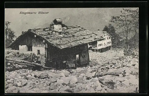 AK Vandans, Eingemurte Häuser, Hochwasser 1910