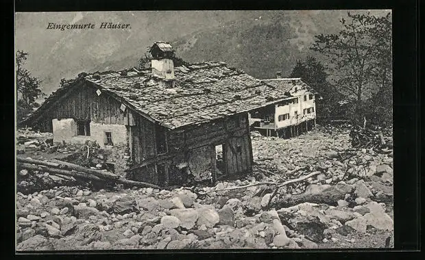AK Vandans i. Montafon, Eingemurte Häuser, Hochwasser