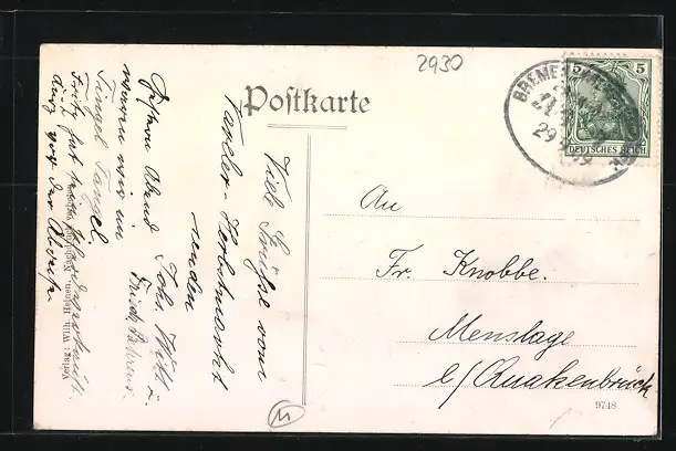 alte Ansichtskarte, gelaufen 1909, guter Zustand