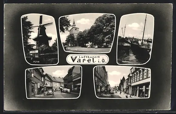 AK Varel i. O., Mühle, Kirche, Neuestrasse, Obernstrasse
