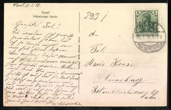 AK Varel i. O., Partie in der Oldenburger Strasse, mit Haus J. F. Duhn