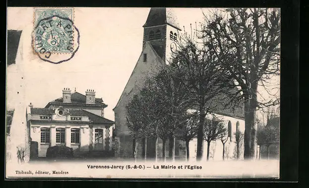 AK Varennes-Jarcy, La Mairie et l`Eglise