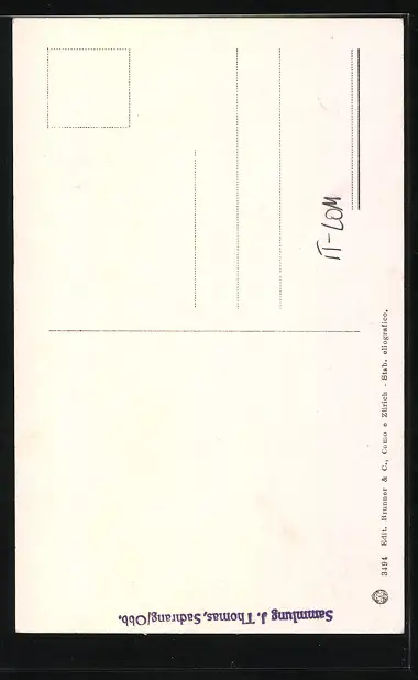 Personenbezogene Daten auf der Rückseite der Karte wurden durch blauen Textmarker unkenntlich gemacht. Die blauen Stellen sind auf die Vorderseite durchgeweicht und wirken sich negativ auf das Postkartenfoto aus