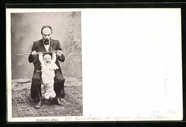 AK Variete, Mann mit einem Baby am Stock, 5mesicni ditko
