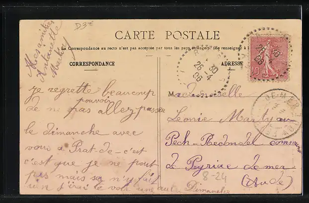 alte Ansichtskarte, gelaufen 1906, guter Zustand