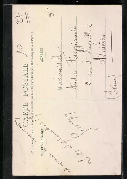 Personenbezogene Daten auf der Rückseite der Karte wurden durch blauen Textmarker unkenntlich gemacht. Die blauen Stellen sind auf die Vorderseite durchgeweicht und wirken sich negativ auf das Postkartenfoto aus