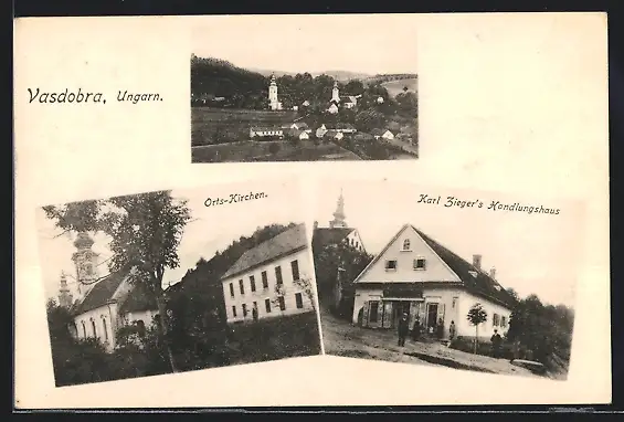 AK Vasdobra, Karl Ziegers Handlung, Orts-Kirchen, Ortsansicht